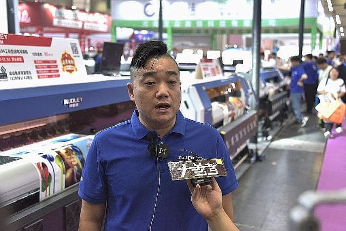 河南印都數(shù)碼科技有限公司市場總監(jiān)李彥磊:河南印都數(shù)碼科技有限公司是河南本地企業(yè),主要做一些廣告設(shè)備及生產(chǎn),是一個研發(fā)銷售為一體的高新企業(yè),我們在展會上參展的是8194的四頭高速的一個寫真機,這個寫真機是產(chǎn)能型的機器,優(yōu)點是三段紅外加熱,電腦支架,這個配置在行業(yè)里邊同類機型里邊應(yīng)該是最最高端的一個配置。