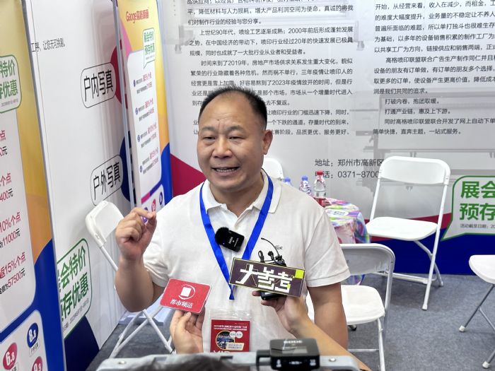 河南奧圖噴畫有限公司 董事長 楊濤:奧圖和高格每年都參加這個展會,奧圖和高格是作為河南噴印行業(yè)的資深企業(yè),我們從高端低端,高中低三個方面給大家提供全方位的服務(wù),奧圖主要是服務(wù)c端的客戶,而高格為我們同行提高行業(yè)價值增加效益,作為一個河南的老廣告人,通過我們天天廣告展見證了鄭州的發(fā)展,見證了我自己企業(yè)的發(fā)展,同時也見證了行業(yè)的發(fā)展。