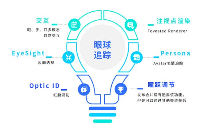 路偉成表示,基于眼球追蹤技術(shù),蘋果Vision Pro實現(xiàn)了注視點渲染、自動瞳距調(diào)節(jié)、眼控交互、Optic ID(虹膜識別)、Eyesight(反向透視)、Persona(虛擬人表情追蹤)等一系列實用且極具科技感的功能和體驗,“第一次將眼球追蹤技術(shù)在XR領(lǐng)域的真正潛力呈現(xiàn)給世人!
