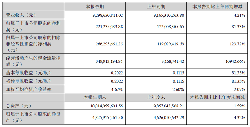 根據(jù)半年報,公司第二季度實現(xiàn)營業(yè)總收入22.36億元,同比增長15.24%,環(huán)比增長25.45%;歸母凈利潤2.16億元,同比增長41.82%,環(huán)比增長77.34%;扣非凈利潤1.94億元,同比增長42.03%,環(huán)比增長155.80%。