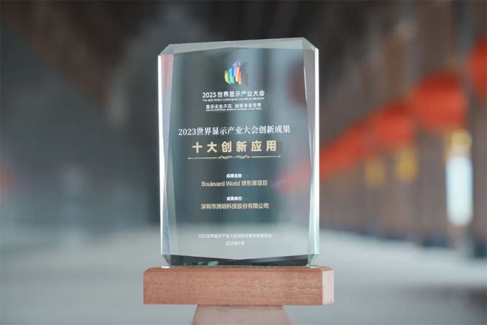 9月7日,在2023世界顯示產(chǎn)業(yè)大會開幕式上,洲明“Boulevard World 球形屏項目”榮獲本次大會創(chuàng)新成果(十大創(chuàng)新應(yīng)用)。