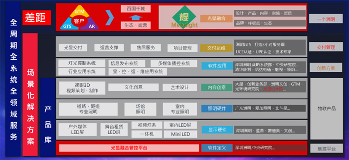 光顯是以LED半導(dǎo)體產(chǎn)品為基礎(chǔ),融合前沿技術(shù)如AI、裸眼3D、物聯(lián)網(wǎng)、集群控制、5G、4K/8K等主流科學(xué)技術(shù)手段,搭載藝術(shù)與設(shè)計生態(tài),滿足新型商業(yè)、體育、文旅、娛樂等行業(yè)空間視覺體驗需求,為用戶提供光顯場景解決方案的新產(chǎn)業(yè)。