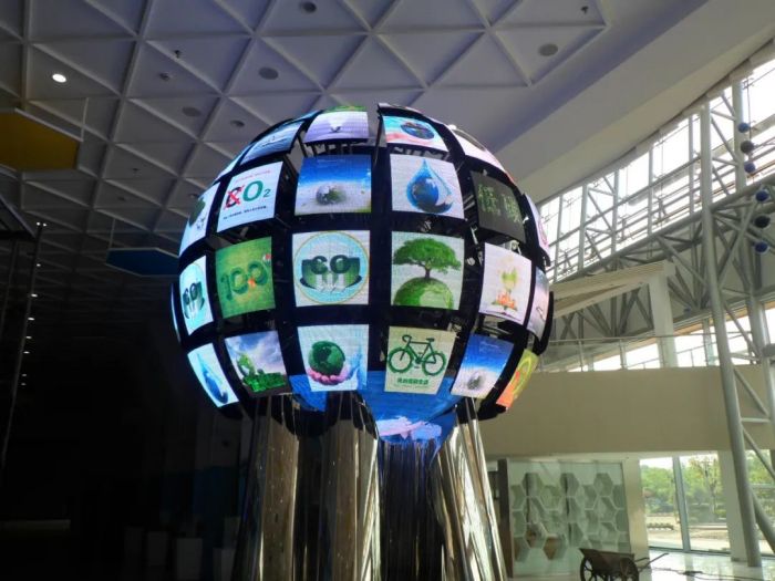 中國杭州低碳科技館是全球第一家以低碳為主題的大型科技館,館內(nèi)的“低碳地球”十分醒目。這是雷曼康碩展為該館打造的直徑為2.5m的LED伸縮球,由多個可單獨(dú)拆卸的箱體拼接成球形且可進(jìn)行伸縮,幫助公眾了解低碳理念。