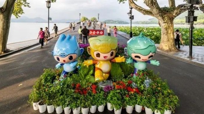 杭州西湖北山街?jǐn)鄻蚩,亞運(yùn)會吉祥物“江南憶”