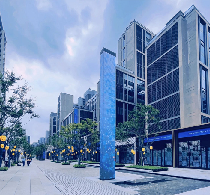 技術(shù)官員村媒體塔屏除賽事場館大屏外,亞運村技術(shù)官員村媒體塔屏也是本屆亞運會洛普公司打造的另一大亮眼產(chǎn)品。媒體塔屏屹立于街道中心位置,與周邊建筑光影相呼應(yīng),營造出智能、現(xiàn)代、炫彩的視覺氛圍。由于塔高有9.1m,塔身厚度僅0.5m,屏幕的安裝方式、狹窄空間的散熱問題和整體的抗震性都給洛普團隊帶來了極大的技術(shù)挑戰(zhàn)。洛普公司工程設(shè)計、產(chǎn)品設(shè)計團隊通過多輪頭腦風(fēng)暴后選用一體式轉(zhuǎn)角箱體和前拆式全密封模塊方案,并成功通過夏季高溫測試和穩(wěn)定性等試驗,最終交付了令人滿意的一件“電子藝術(shù)品”。
