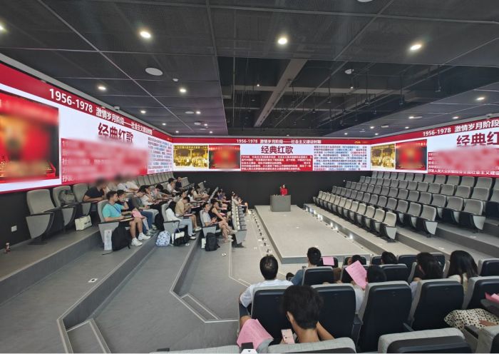 其中近100㎡的3面屏吸引到全校師生的目光,屏幕位于環(huán)形階梯教室內,新穎的呈現(xiàn)方式帶來耳目一新的教學體驗。