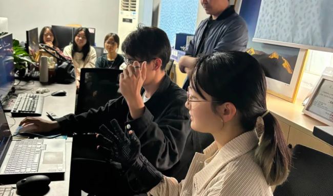 隨后,邵楊親自展示StretchSense手指捕捉系統(tǒng)的使用方法,并邀請(qǐng)了現(xiàn)場(chǎng)師生參與體驗(yàn)。通過實(shí)際操作,大家親身體驗(yàn)到了StretchSense手指捕捉系統(tǒng)的高精度和便捷性,對(duì)手指捕捉技術(shù)有了更加直觀的認(rèn)識(shí)。