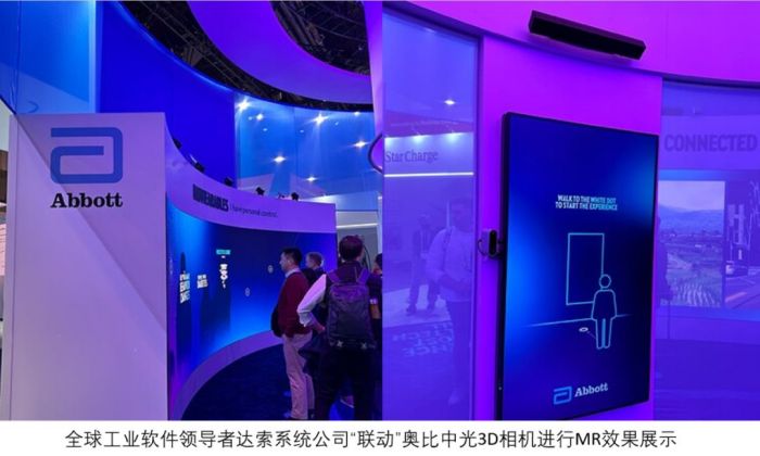 有意思的是,今年CES展臺(tái)的“含奧比量”明顯增加,在眾多頭部參展商的展位現(xiàn)場(chǎng)均看到了奧比中光3D相機(jī)的生動(dòng)實(shí)現(xiàn),包括全球工業(yè)軟件領(lǐng)導(dǎo)者達(dá)索系統(tǒng)公司在現(xiàn)場(chǎng)MR效果演示中即運(yùn)用到奧比中光的3D相機(jī)、全球醫(yī)療健康行業(yè)領(lǐng)導(dǎo)者雅培公司展位展示也搭載了奧比中光的產(chǎn)品。