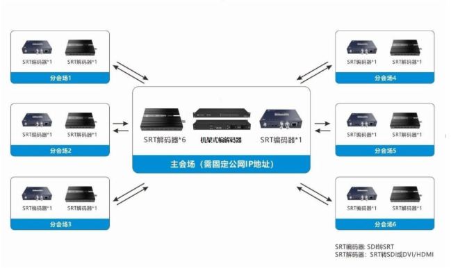 千視SRT遠(yuǎn)程傳輸主分會(huì)場連接示意圖