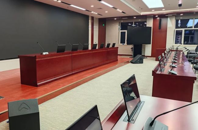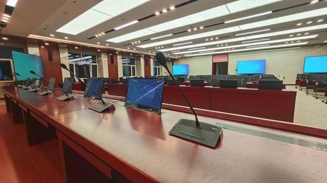 會議系統(tǒng): 采用了比利時Televic品牌的D-Cerno數(shù)字會議討論系統(tǒng)41席會議系統(tǒng)解決方案。 D-Cerno運用了數(shù)字技術,設計時尚大方,操作簡單方便,在激烈的市場競爭中脫穎而出。