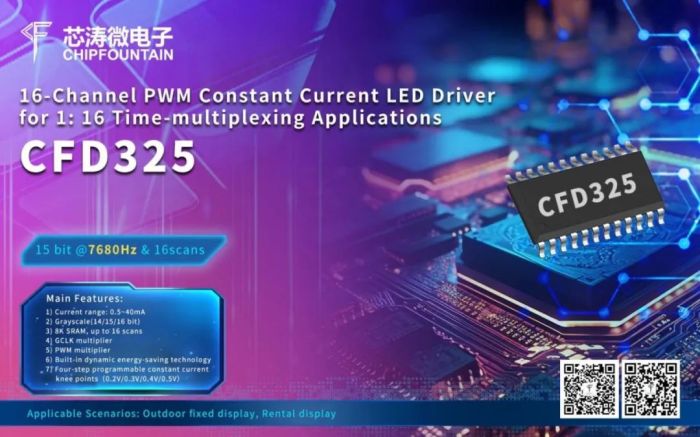 CFD325則是針對(duì)租賃顯示屏推出的一款差異化驅(qū)動(dòng)驅(qū)動(dòng)解決方案,最大支持16行掃描,輸出電流最高可達(dá)40mA,可在16掃的條件下,實(shí)現(xiàn)7680Hz刷新和15bit灰度,能夠?yàn)樽赓U行業(yè)客戶驅(qū)動(dòng)解決方案需求提供多樣化選擇,滿足特定場(chǎng)景的應(yīng)用需求。