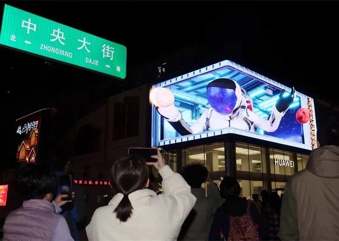 國慶期間,當你漫步在”東方小巴黎“的哈爾濱中央大街時,聯(lián)建光電的裸眼3D大屏猶如一顆璀璨的明珠,鑲嵌于華為生活體驗中心的上方,神龍獻瑞,感受中國式浪漫!