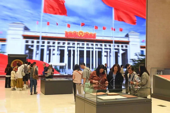 本次展覽系統(tǒng)展示中國國家博物館館藏革命年代的紅旗、中華人民共和國成立后的五星紅旗和黨旗、革命題材經(jīng)典美術(shù)作品等紅色文物60余件,以及100張新時代以國旗為主題的高清照片,并首次輔以裸眼3D動態(tài)展示國旗,展現(xiàn)五星紅旗的誕生過程和新時代國旗飄揚(yáng)在祖國大好河山的壯美場景。