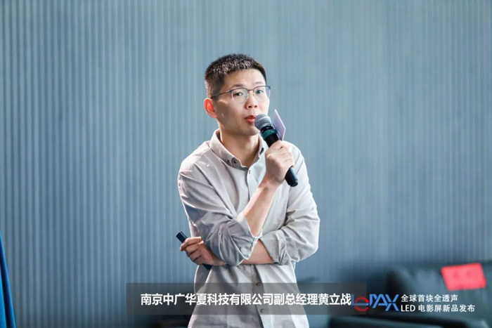 南京洛普公司首席科學(xué)家朱斌宣布全透聲LED電影屏全球首發(fā)