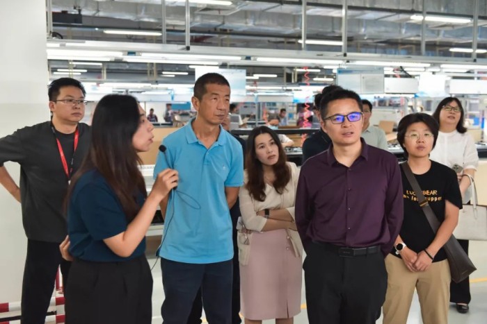 項(xiàng)目組實(shí)地參觀了全球首條Mini LED 120寸模組整機(jī)一體化自動(dòng)線體,感受產(chǎn)線超大型機(jī)械臂、AI防錯(cuò)防呆系統(tǒng)、無(wú)人畫(huà)檢工序等數(shù)字化應(yīng)用。