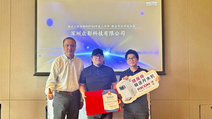 自2012年理光投影進入中國市場以來,理光將深耕本土作為長期發(fā)展策略,在中國商顯賽道多次高光亮相,而這背后都離不開代理商等合作伙伴的鼎立支持。本次會議上,理光分別向優(yōu)秀的代理商們頒發(fā)“新合作伙伴成長獎” “項目特別貢獻獎”“最佳銷量成長獎”等榮譽。這些獎項不僅是理光對代理商努力奉獻的肯定,更是對未來大家攜手并進、互利共贏的期待和相互鼓舞。