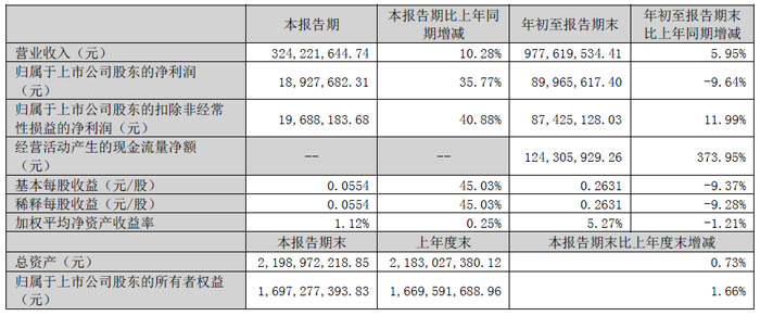 其中,公司第三季度實現(xiàn)營收約37.74億元,同比增加14.34%;歸母凈利潤2.01億元,同比下降2.32%;扣非凈利潤1.55億元,同比下降7.03%。