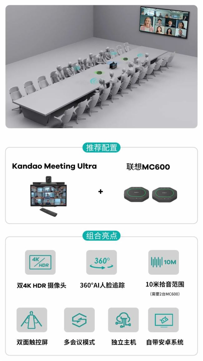 Kandao Meeting Ultra系列產(chǎn)品與聯(lián)想thinkplus全向麥的會(huì)議設(shè)備組合,不僅連接便捷、即插即用 ,而且在視頻畫(huà)質(zhì)、音質(zhì)效果、AI智能體驗(yàn)上強(qiáng)強(qiáng)聯(lián)合 ,無(wú)疑將引領(lǐng)混合會(huì)議新潮流,為現(xiàn)代企業(yè)的高效協(xié)作與溝通提供強(qiáng)有力的支持。
