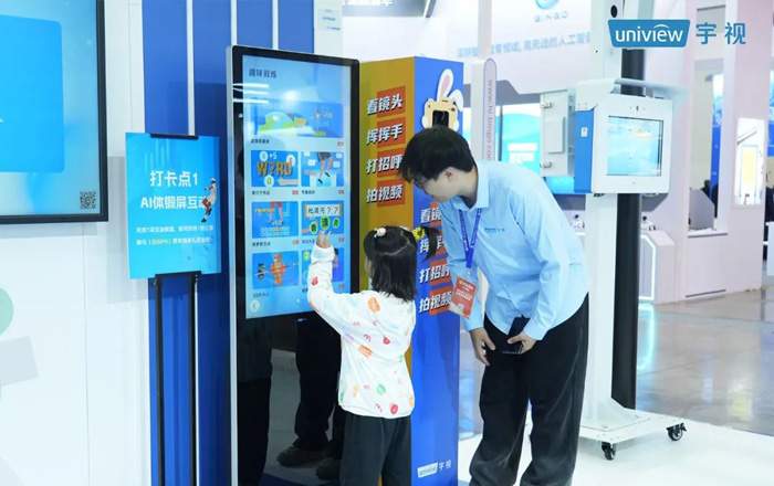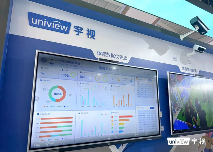智慧體育的現(xiàn)場互動體驗吸引了大量觀眾打卡,宇視推出AI體測屏、AI跑步屏等系列裝備, 覆蓋教學(xué)區(qū)、體鍛角、運動操場三類場景,滿足學(xué)!敖、練、測、賽、評”的全場景需求。