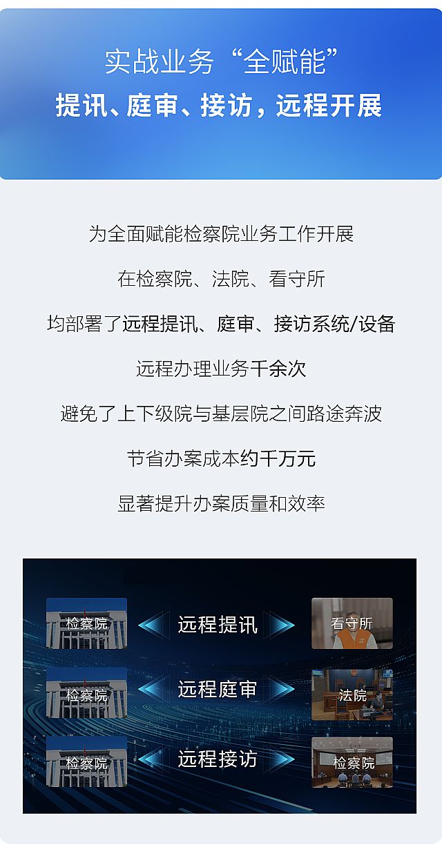 實現(xiàn)檢察官異地提訊、多方異地參與庭審等