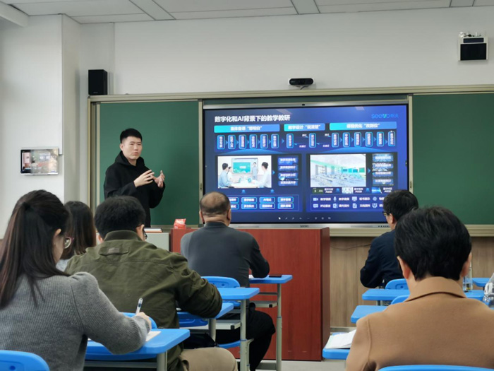 希沃作為此次活動的唯一技術支持單位,不僅提供希沃課堂智能反饋系統(tǒng)的數(shù)字化設備,還以多方位的培訓服務助力活動圓滿舉行。希沃培訓講師杜禹建向老師們進行《希沃人工智能賦能教學教研方式變革》的主題分享,結合實例,從課堂設計、群智聯(lián)研、多遠評估、資源優(yōu)化等方面全流程進行了展示,全面展現(xiàn)了希沃在“AI+教育”領域的不懈探索及其成果,讓AI技術真正與教學、學習需求結合,激發(fā)每一位師生的創(chuàng)造潛力,去創(chuàng)造無限的可能。