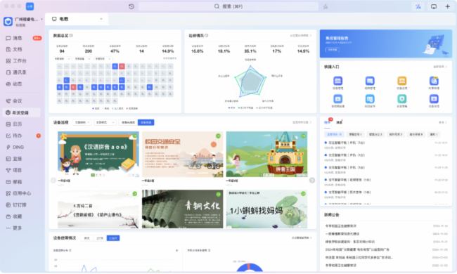 目前,雙方已經(jīng)實現(xiàn)產(chǎn)品場景融合方案的初步落地,為校方管理者、一線教職工提供1+1>2的智慧教育體驗。 校長主任無需多設(shè)備App來回切換,只需通過釘釘“AI助理”一個入口,即可獲取專屬教研、評價與管理數(shù)據(jù)變化周報,輔助校園動態(tài)決策。信息化管理員無需現(xiàn)場巡查、手動統(tǒng)計,即可通過可視化報表,隨時了解交互智能平板等設(shè)備使用與達標情況,篩查設(shè)備異常狀態(tài)。對于一線教師來說,集成后的新系統(tǒng)大大簡化了繁瑣、零碎的教學(xué)事務(wù),老師可直接通過釘釘側(cè)邊欄,一站式訪問白板課件資源,完成集體備課、聽評課等日常教學(xué)操作,實現(xiàn)教學(xué)資源共研共享。