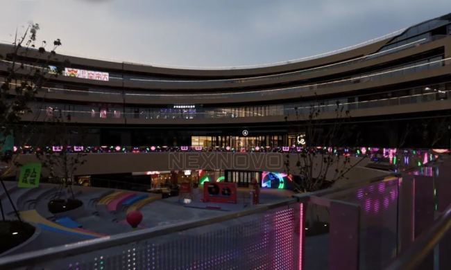 德清銀泰城下沉廣場(chǎng)采用的晶泓光電玻璃,其P10間距、4000nit的亮度能夠精準(zhǔn)呈現(xiàn)各類氛圍元素及商業(yè)、文化、氛圍素材,不僅有效解決了地下空間的采光難題,還極大地豐富了主入口的視覺層次,未來感十足,科技感鮮明,為顧客營(yíng)造出一種既商業(yè)又藝術(shù)的購(gòu)物氛圍,帶來前所未有的視覺體驗(yàn)。