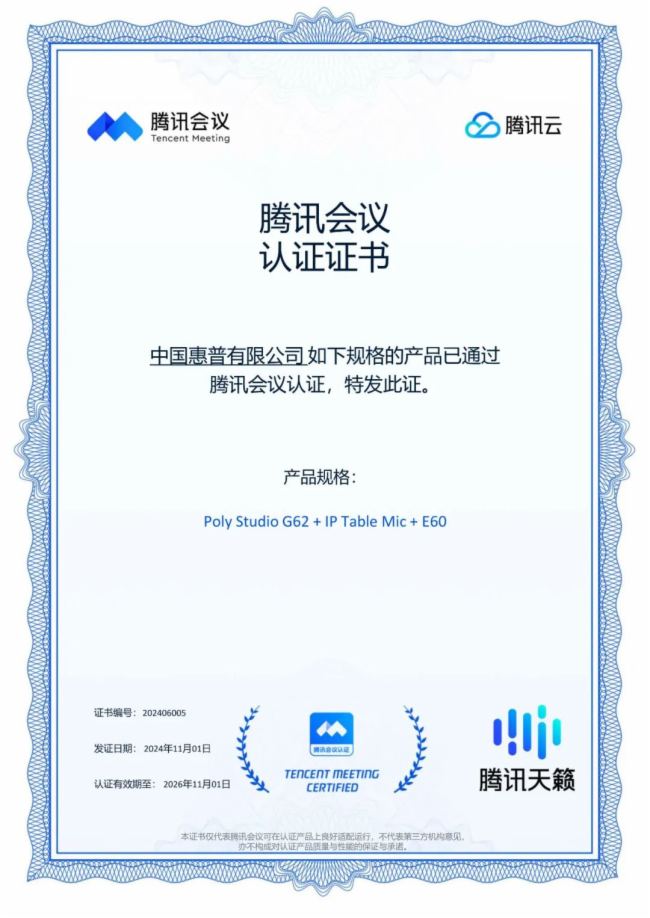 新品Poly Studio G62獲騰訊會議認證,打造全新會議體驗