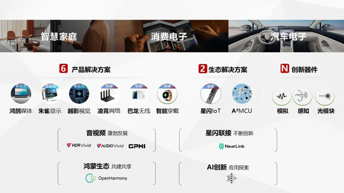 6+2+N解決方案標志著上海海思的產(chǎn)品序列進一步完善,并且其中音視頻與星閃相關(guān)解決方案首次進入汽車電子領(lǐng)域。