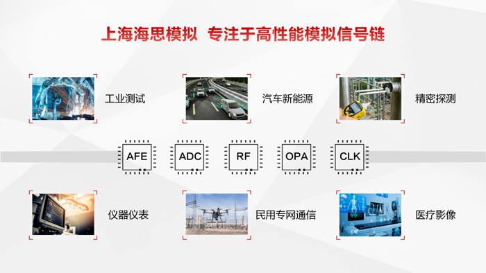 模擬產(chǎn)品則聚焦安全可靠的功率半導體和精密高效的信號鏈兩類產(chǎn)品。信號鏈方面,提供高集成度、低功耗、低噪聲的AFE和高精度、高性能高速ADC,其中32/64通道低噪聲低功耗產(chǎn)品可應(yīng)用于工業(yè)測試、醫(yī)療成像、高密存儲等場景,2通道2Msps高動態(tài)低功耗產(chǎn)品可應(yīng)用于儀器儀表、精密探測等場景,高性能低功耗4/8通道125Msps則可用于高速儀器儀表、高速成像、聲吶探測等更專業(yè)場景應(yīng)用。