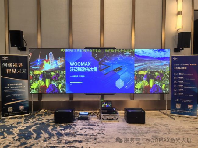 而為了讓與會者親身體驗沃邁斯激光大屏的卓越性能,康帕斯科技還在現(xiàn)場搭建了一套220寸的沃邁斯樣品。其震撼的顯示效果,無論是色彩還原度、對比度,還是清晰度,都令在場人員贊嘆不已。行業(yè)領導和專家們紛紛表示,沃邁斯激光大屏無疑為教育行業(yè)帶來了全新的視覺體驗,其表現(xiàn)令人印象深刻。