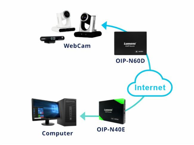 OIP-N60D解碼器透過IP網(wǎng)絡(luò)傳送USB網(wǎng)絡(luò)攝像機的影音頻號,提供視頻會議協(xié)作使用,具有易于安裝的彈性及降低成本的效益。此功能搭配使用OIP-N40E將網(wǎng)絡(luò)攝像機的影音頻號轉(zhuǎn)換輸出為USB 訊號。