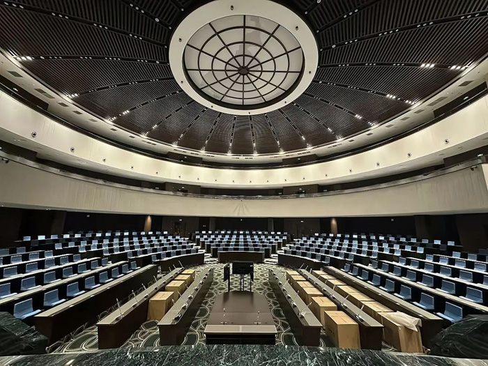 例如,2024年11月底,援喀麥隆國民議會大樓項目政府間交接儀式在喀麥隆首都雅溫得隆重舉行。CREATOR快捷承擔(dān)的該項目中議事廳等場景的數(shù)字會議系統(tǒng)和信號傳輸管理部分的建設(shè)工作同步完成交付。包括DIG系列嵌入式數(shù)字會議系統(tǒng)、VFD系列數(shù)字會議系統(tǒng)1000多套,紅外同聲傳譯發(fā)言表決單元500多席、雙邊耳機(jī)1000多套、PRO系列混合拼接矩陣、圖蒙中央控制系統(tǒng)10多套、高清會議錄播一體機(jī)以及高清攝像機(jī)20多臺等國產(chǎn)設(shè)備,見證了CREATOR快捷一站式交付能力的強大。