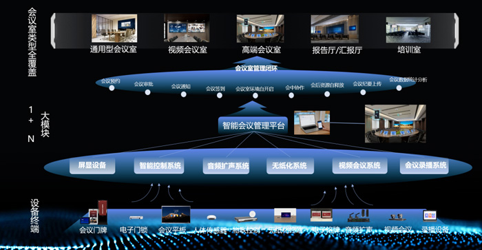 ?低曋悄軙(huì)議方案,以智能會(huì)管平臺(tái)為核心,從要素感知到物聯(lián)中控、會(huì)議協(xié)作、閉環(huán)貫穿會(huì)議全流程,實(shí)現(xiàn)智能會(huì)議場景應(yīng)用人效提升和管理升級(jí)。