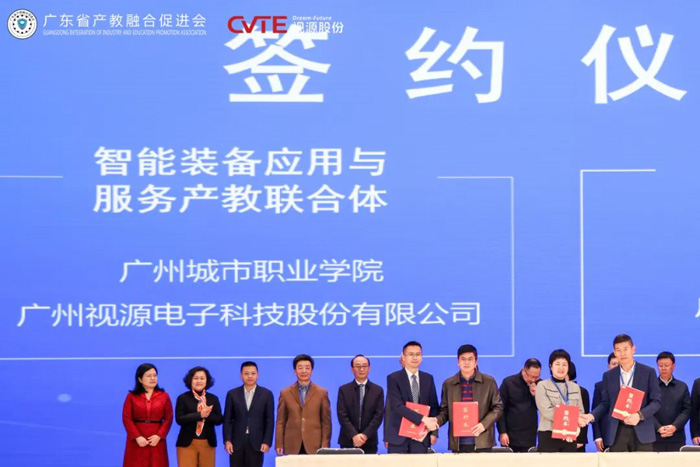 12月28日,廣東省產(chǎn)教融合高質(zhì)量發(fā)展論壇暨廣東省產(chǎn)教融合促進(jìn)會(huì)2024年年會(huì)在視源電子科技股份有限公司第五產(chǎn)業(yè)園順利舉辦。本次大會(huì)以“創(chuàng)新產(chǎn)教融合,發(fā)展新質(zhì)生產(chǎn)力”為主題,政府相關(guān)部門、院校、行業(yè)、協(xié)會(huì)、企業(yè)等共計(jì)約500人參加大會(huì)。視源股份作為“廣州智能裝備應(yīng)用與服務(wù)產(chǎn)教聯(lián)合體”牽頭企業(yè)進(jìn)行校企合作簽約,視源股份旗下未來教育集團(tuán)(希沃)分享產(chǎn)教融合的探索和實(shí)踐。
