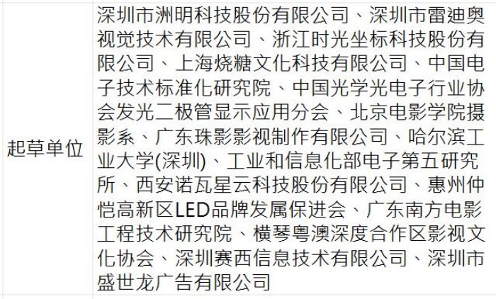 作為全國電子顯示器件標委會、全國照明電器標委會、全國電影標委會委員單位,洲明科技聯(lián)合旗下洲明ROE,以及時光坐標、上海燒糖、中國電子標準院、中國光協(xié)LED顯示應用分會、北京電影學院、廣東珠影、哈爾濱工業(yè)大學和工信部五所、深圳賽西信息技術(shù)有限公司等“產(chǎn)學研用”單位,起草制定并由中國光學光電子行業(yè)協(xié)會發(fā)布全球首個VP用LED顯示屏標準。
