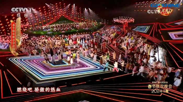 不走往年路,中央廣播電視總臺《2024年春節(jié)聯(lián)歡晚會》采用“4+1”模式,設立了主會場和長沙、西安、遼寧、新疆喀什四地分會場。其中,四地分會場各具特色的舞臺設計和節(jié)目創(chuàng)排,展現(xiàn)出當?shù)仫L土人情和新春興旺。主會場與四地分會場銜接流暢、一氣呵成,新春的歡樂喜氣撲面而來。