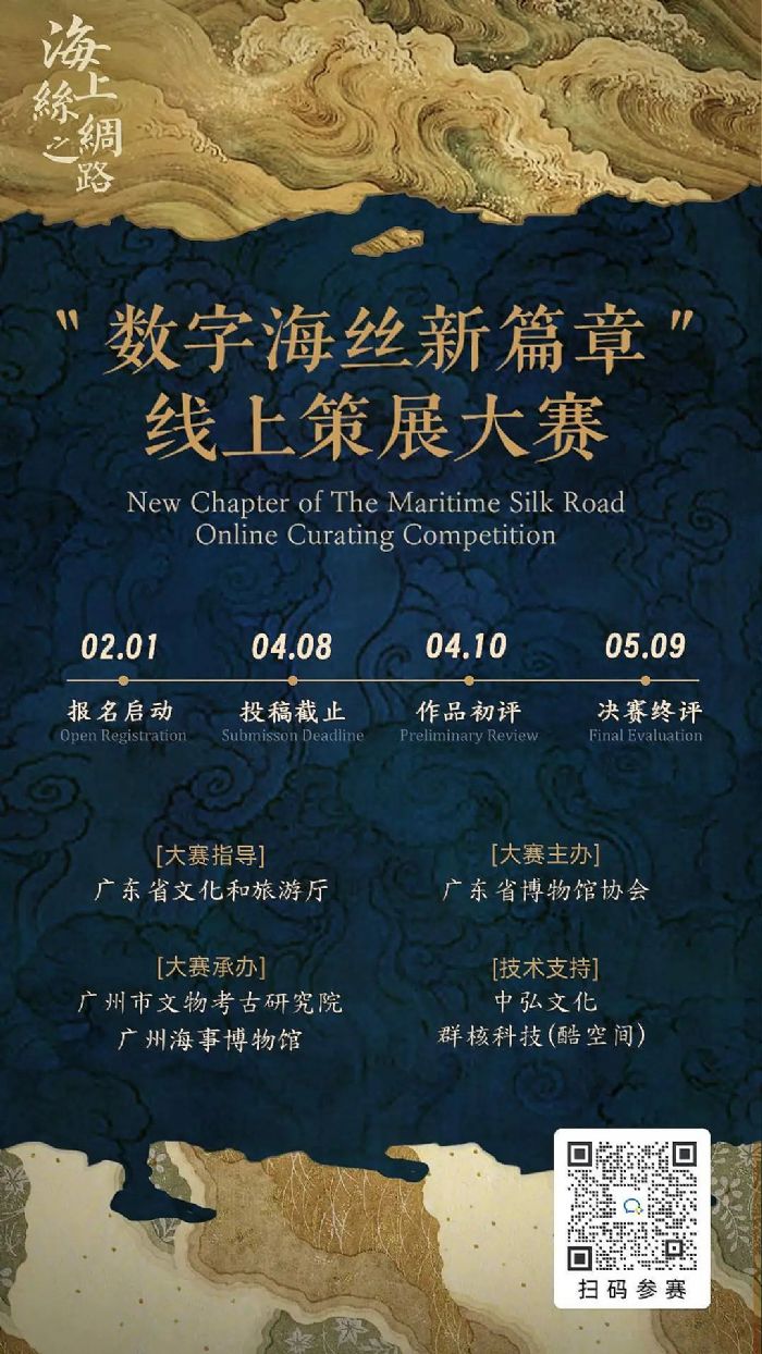 而2024“數(shù)字海絲新篇章”線上策展大賽由廣東省博物館協(xié)會、海上絲綢之路保護(hù)和聯(lián)合申報世界文化遺產(chǎn)城市聯(lián)盟辦公室(廣州)主辦,廣州市文物考古研究院、海上絲綢之路 (廣州)文化遺產(chǎn)保護(hù)管理研究中心、廣州海事博物館承辦,群核科技(酷空間)提供大賽技術(shù)支持。本次“數(shù)字海絲新篇章”云上策展大賽將傳統(tǒng)文化與數(shù)字技術(shù)結(jié)合,以全新的視角呈現(xiàn)古代海上絲綢之路的故事,構(gòu)建集收藏、展覽、教育和策展功能于一體的“文博領(lǐng)域賽事”。