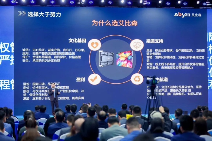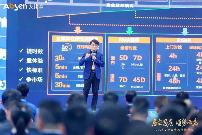 艾比森堅(jiān)持開放融合的理念,匯集各方力量,推動(dòng)合作共贏,加快形成LED顯示產(chǎn)業(yè)新質(zhì)生產(chǎn)力。會(huì)上,艾比森管理團(tuán)隊(duì)分別從戰(zhàn)略管理、組織能力、品牌建設(shè)、產(chǎn)品技術(shù)、生態(tài)建設(shè)、供應(yīng)鏈管理、服務(wù)體系、銷售等維度解析戰(zhàn)略目標(biāo),助力生態(tài)伙伴在深度合作中全面協(xié)同發(fā)展,促進(jìn)能力提升,真正實(shí)現(xiàn)共贏。
