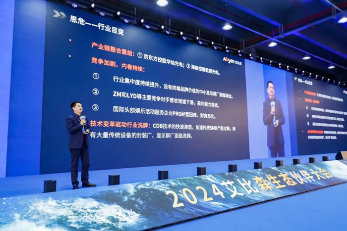 大會(huì)現(xiàn)場(chǎng),艾比森董事長丁彥輝發(fā)表《居安思危,順勢(shì)而為》主題演講,以生動(dòng)的案例、詳實(shí)的數(shù)據(jù)深入淺出地分享了在行業(yè)變革大勢(shì)之下的前瞻洞察和專業(yè)思考。他表示,當(dāng)今世界變亂交織,百年變局加速演進(jìn),國際環(huán)境風(fēng)高浪急,行業(yè)競(jìng)爭加劇,既蘊(yùn)藏著全新的發(fā)展機(jī)遇,也帶來了前所未有的變數(shù)與挑戰(zhàn)。