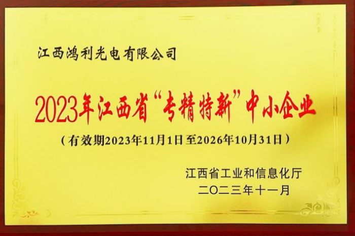 科技賦能|江西鴻利光電獲評2023年江西省專精特新中小企業(yè)