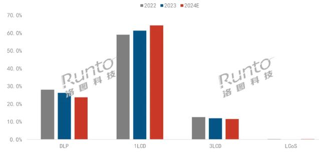 技術(shù):1LCD技術(shù)占比超六成,3LCD穩(wěn)定,DLP承壓