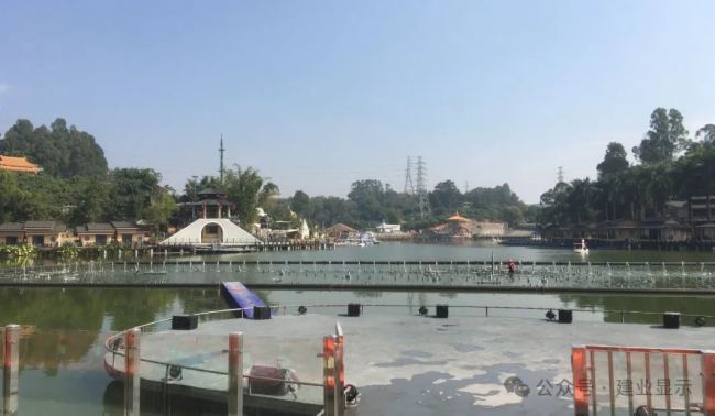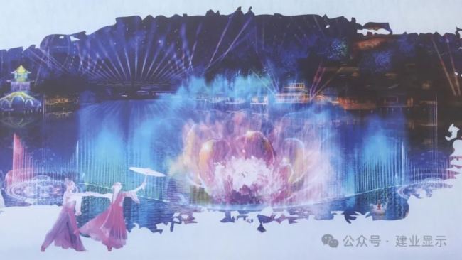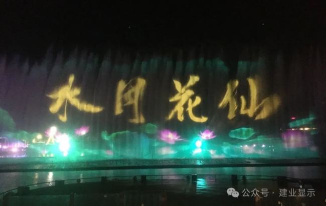 建業(yè)顯示為【深圳觀瀾山水田園景區(qū)《水月花仙》大型實景水上演藝秀項目】提供水幕投影設備與解決方案。