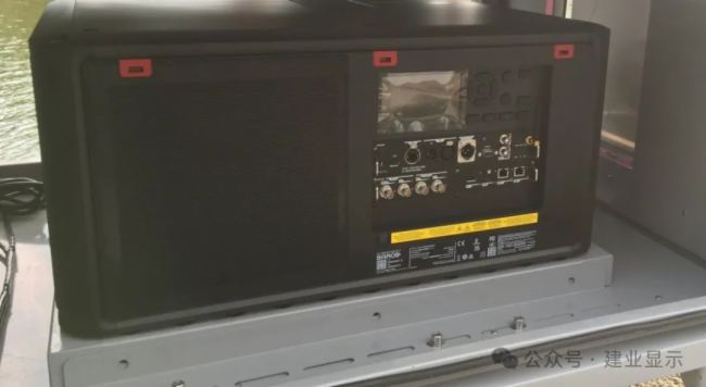 建業(yè)顯示光影作為巴可UDM-W系列中國大陸地區(qū)總代理,在本項目中應用了巴可UDM-W30投影機,安裝在山水田園景區(qū)的湖面上,技術人員日夜調整,為演出做全力準備。
