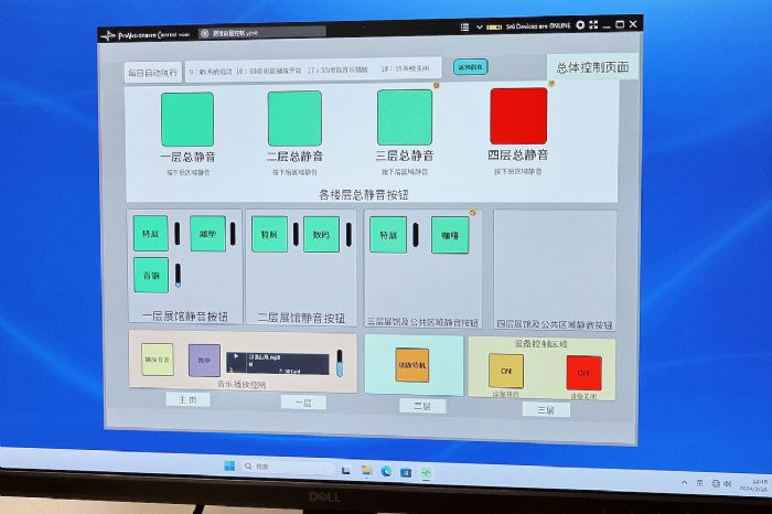 位于一層總控制室的展館背景音樂控制系統(tǒng)用戶界面(基于雅馬哈Provisionaire Control Kiosk軟件)