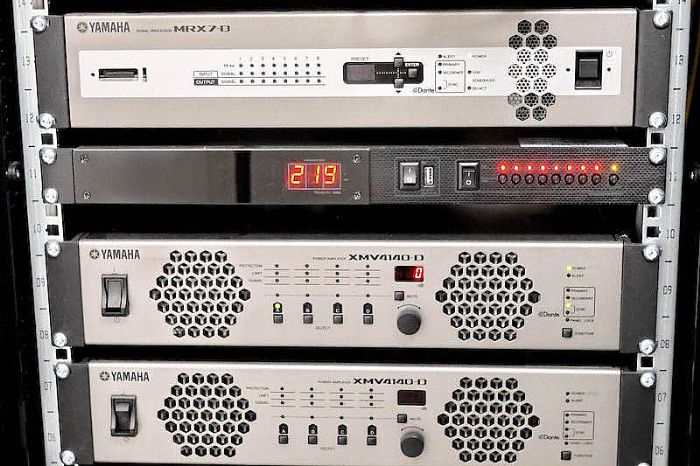 籌備中的學(xué)術(shù)報告廳及其機房控制機柜(雅馬哈MRX7-D矩陣處理器及XMV-D系列多通道功放)