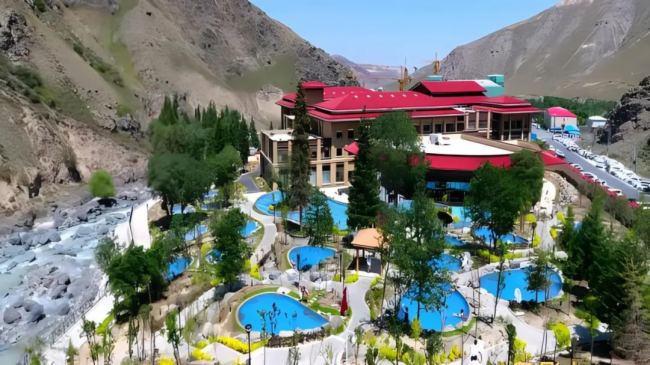 天賜圣泉溫泉度假區(qū)修建在天山深處遠(yuǎn)離省道101有17公里的自然溫泉出水口附近,酒店的窗外就是原始森林,真乃窗含天山萬(wàn)里松。