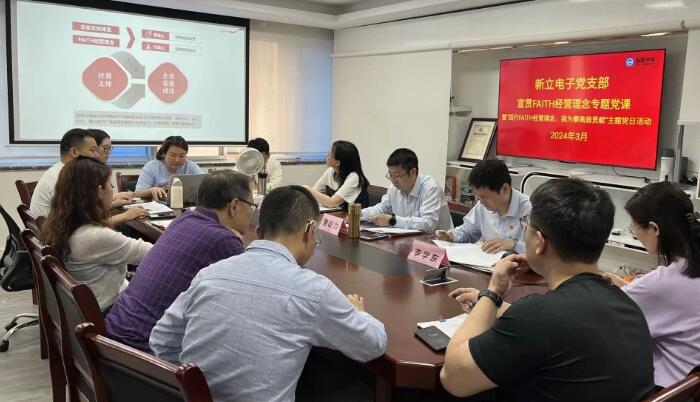 ▲新立電子召開(kāi)宣貫FAITH經(jīng)營(yíng)理念專題黨課