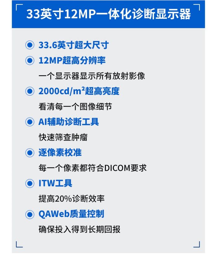 巴可為醫(yī)院提供一體化、智能化、多級(jí)協(xié)作的可視化方案,優(yōu)化醫(yī)學(xué)影像管理,提高醫(yī)療診斷效率和準(zhǔn)確性。本屆CMEF上,巴可重點(diǎn)展示了3MP診斷顯示器、12MP一體化融合顯示器,27英寸病理專用顯示器以及全新推出的AI工具DL Precise。