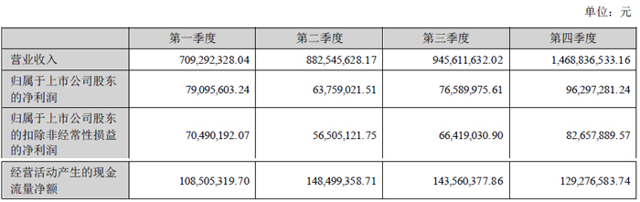 分季度主要財務(wù)指標(biāo)